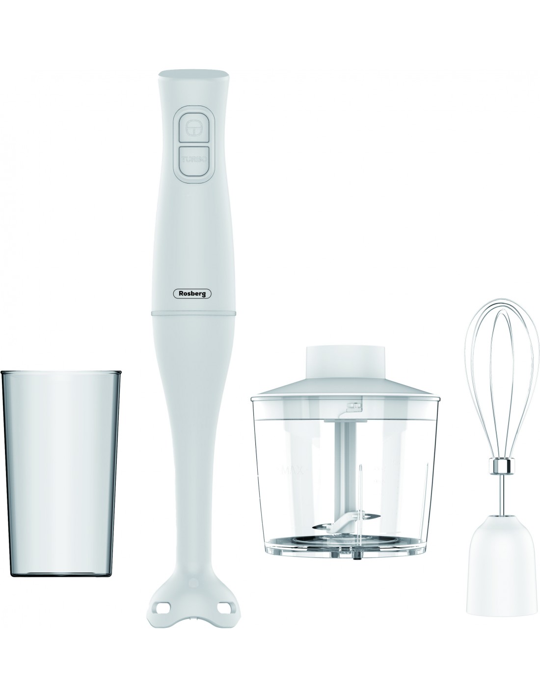 Rosberg R51112OC, Hand Blender Set, 350W, Stainless steel blending rod, Bowl 0.7l, Egg whisk, White