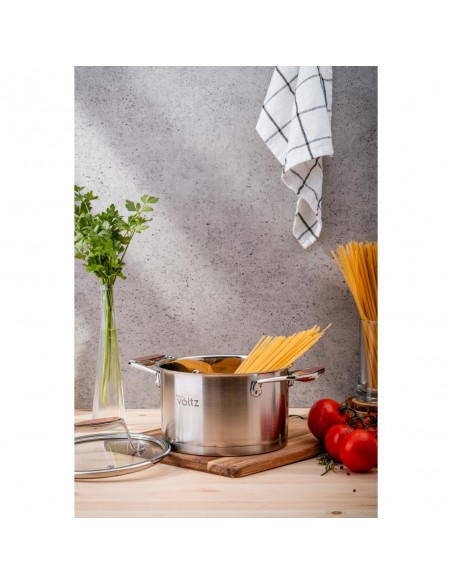 Stainless steel handle with rivet fixing on the cookware body for extra strength.