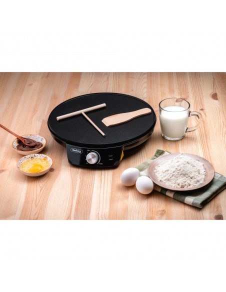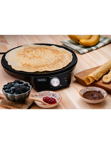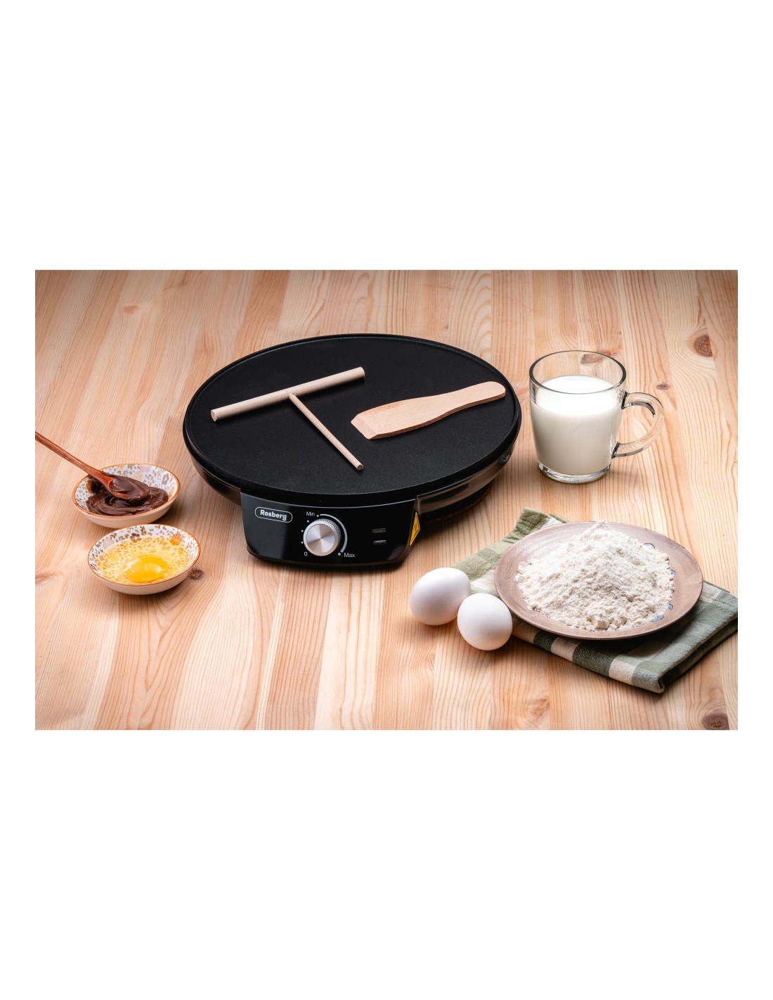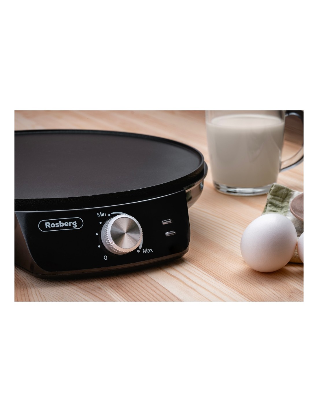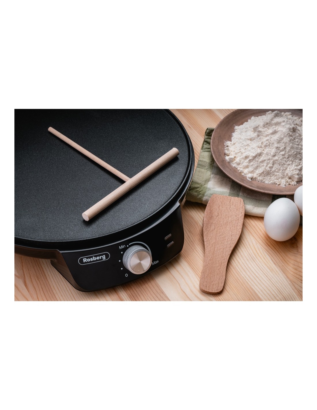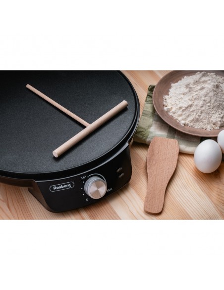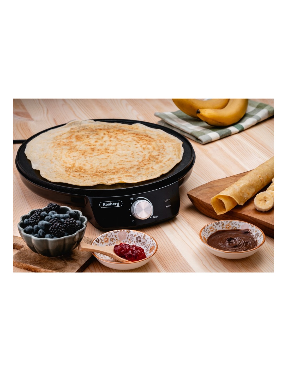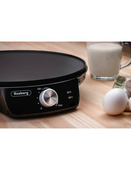 Уред за палачинки Rosberg R51323A, 1200W, 30 см, Незалепващ, Терморегулатор, Черен