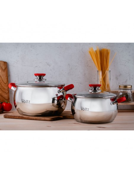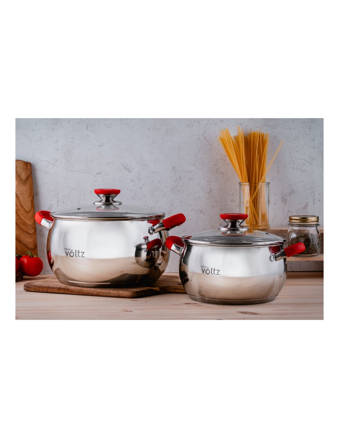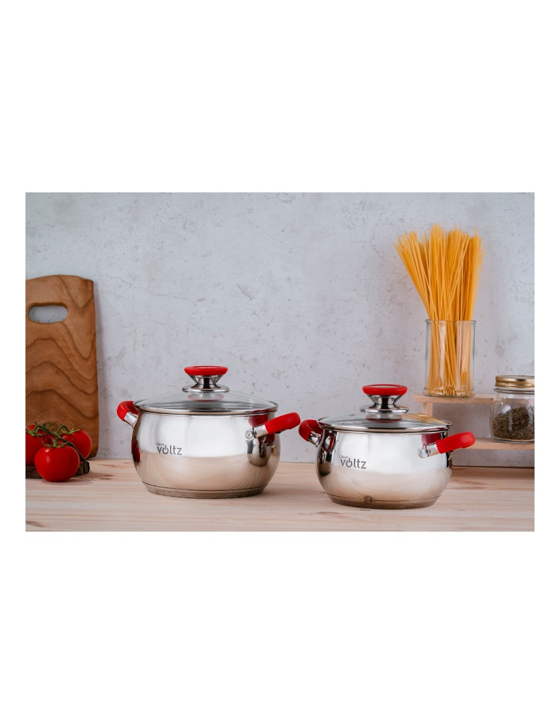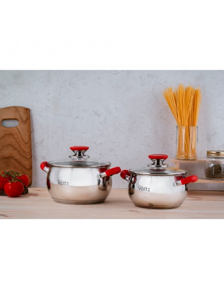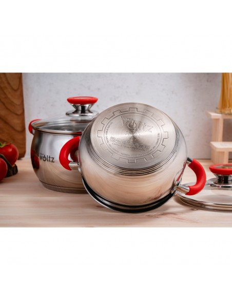Тенджера Voltz OV51210N24, 24см./6л., Червени дръжки, Неръждаема стомана