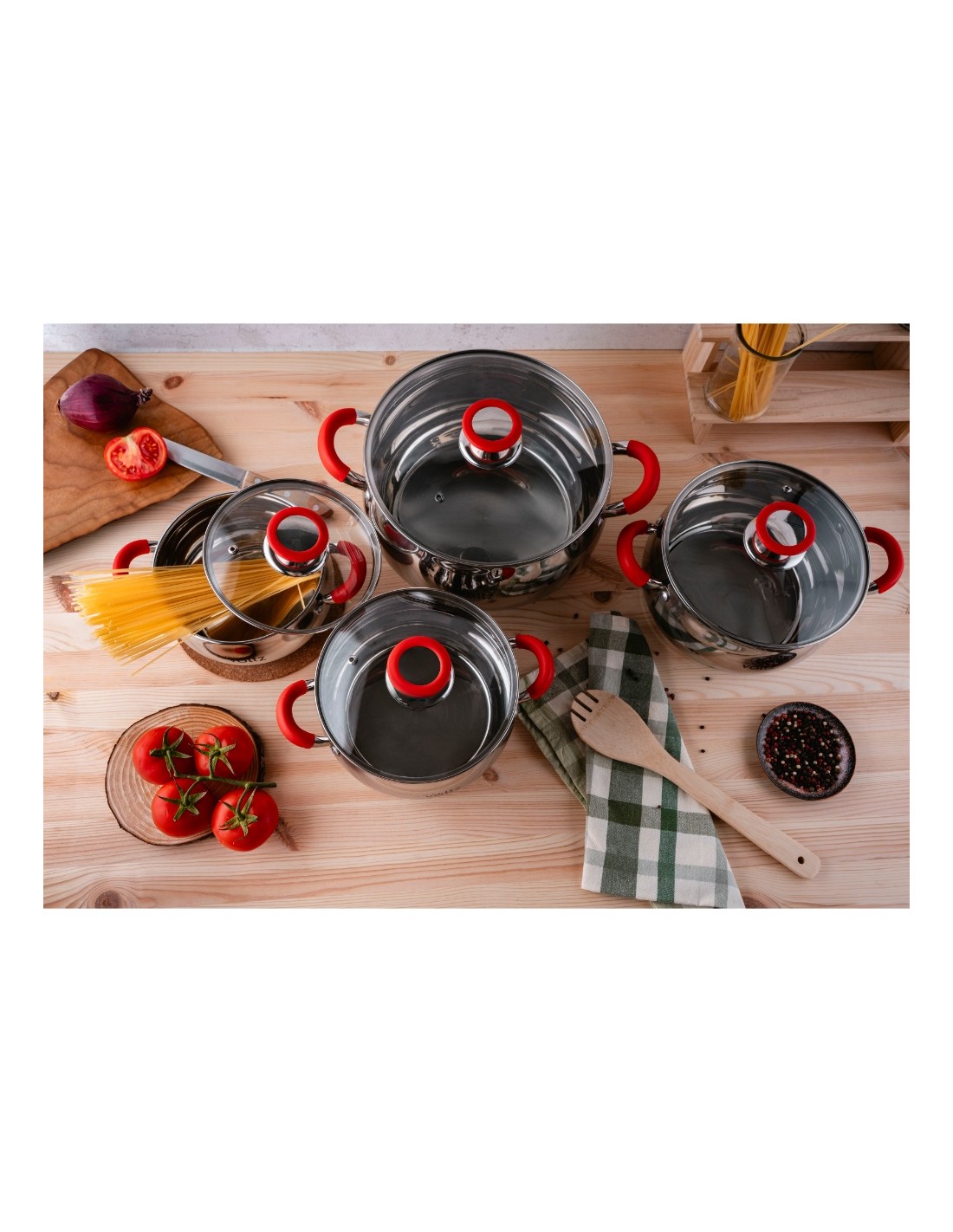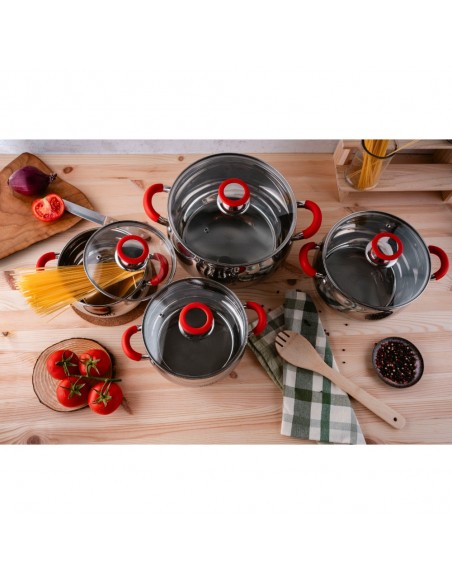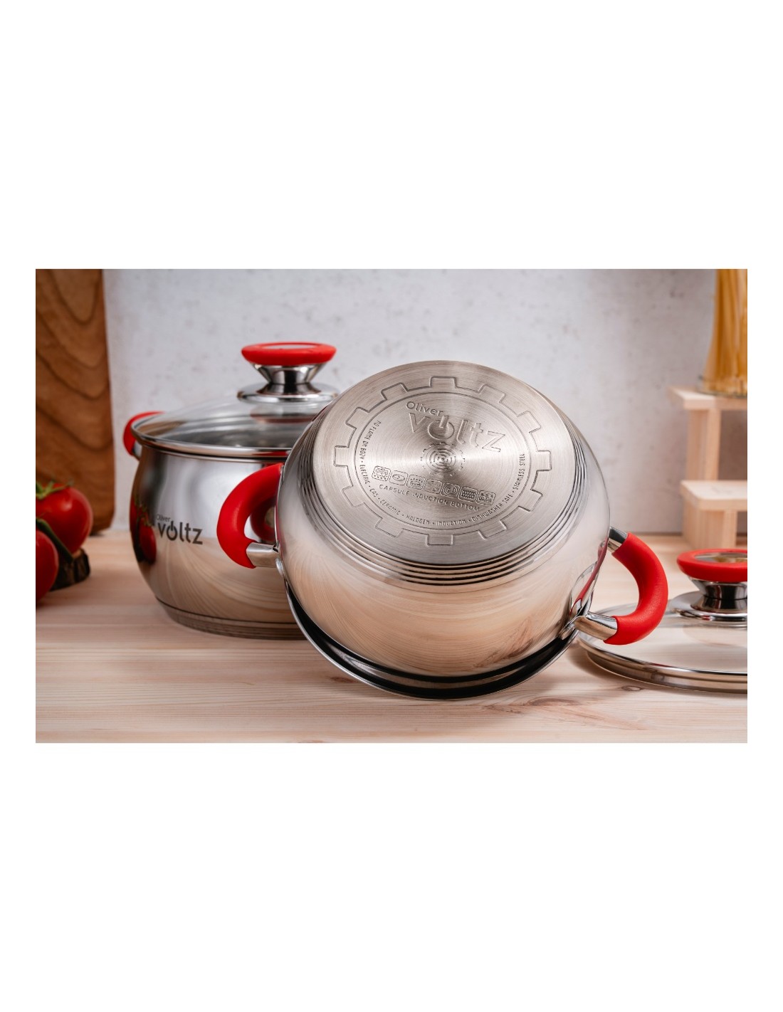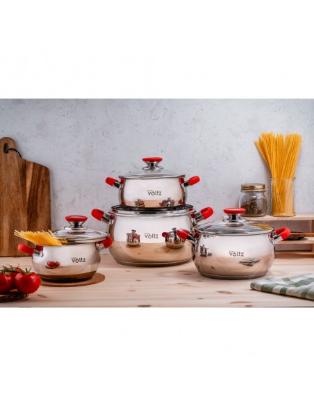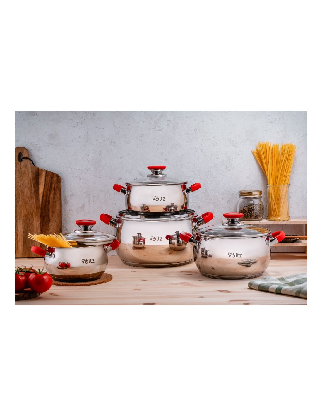 Тенджера Voltz OV51210N24, 24см./6л., Червени дръжки, Неръждаема стомана